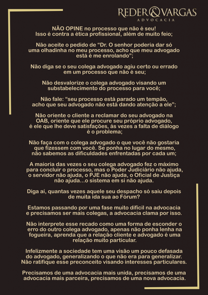 Home Artigos Precisamos de uma advocacia mais unida, precisamos de uma advocacia mais parceira, precisamos de uma nova advocacia. Precisamos de uma advocacia mais unida, precisamos de uma advocacia mais parceira, precisamos de uma nova advocacia.15 de julho de 2019Artigos